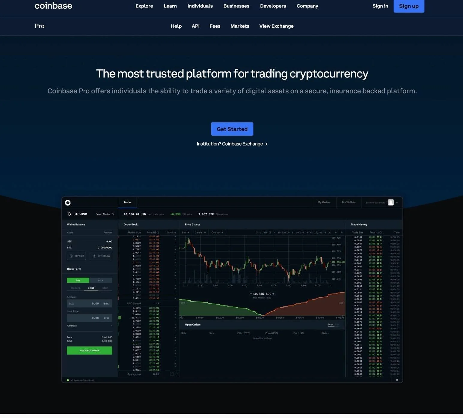 Coinbase Pro is the advanced trading platform of Coinbase. It allows users to: